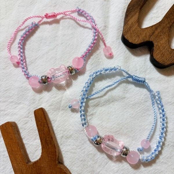 Handwoven in soft pink or calm blue, it features a subtle kitty charm that adds a quiet sense of playfulness without losing its gentle balance. Light and comfortable on the wrist, it carries an easy, youthful mood that feels natural and unforced.