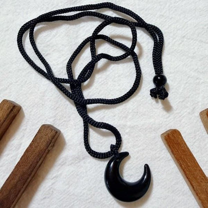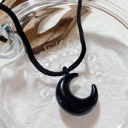 Material: black nylon braided rope, paired with natural obsidian crescent moon pendant.