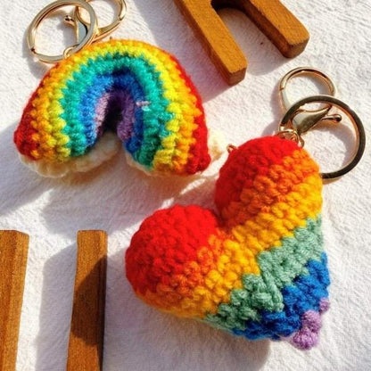 Rainbow Heart Handcrafted Crochet Keychain